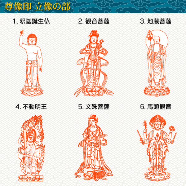 【尊像印・立像の部】釈迦誕生仏 観音菩薩 地蔵菩薩 不動明王 文殊菩薩 三宝荒神 御朱印 はんこ 御朱印 印鑑